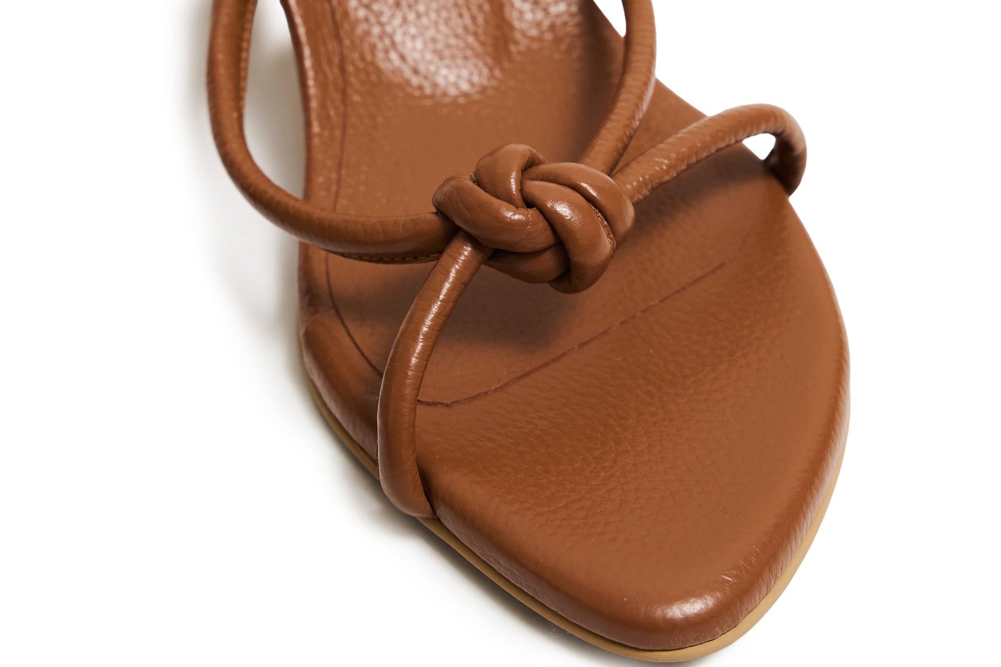 Diseño contemporáneo con esencia artesanal. Esta sandalia, hecha a mano en cuero, destaca por su nudo central y su tacón irregular de 5.5 cm, que aporta carácter sin sacrificar comodidad. Un statement sutil para elevar cualquier look.